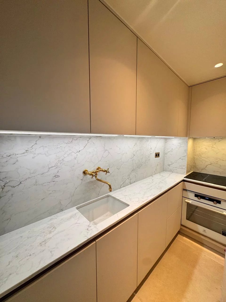 The apartment features a spacious living room with a fully fitted modern kitchen. The living area opens onto a balcony, the perfect spot to enjoy your morning coffee.